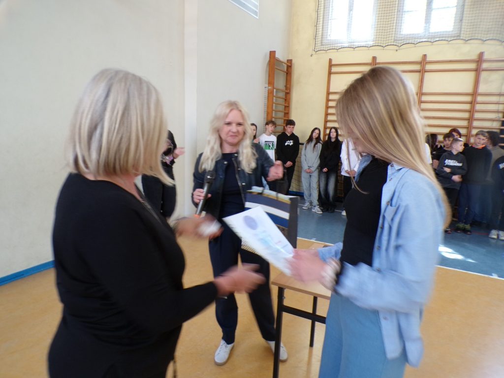 Nagroda oraz dyplom zostały wysłane pocztą, a uroczystego wręczenia podczas szkolnego apelu dokonała Pani Dyrektor Agnieszka Ruks.