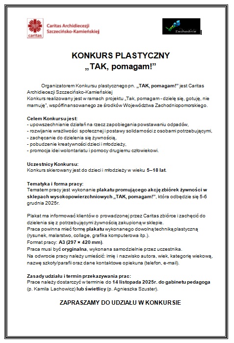 KONKURS PLASTYCZNY „TAK, pomagam!”