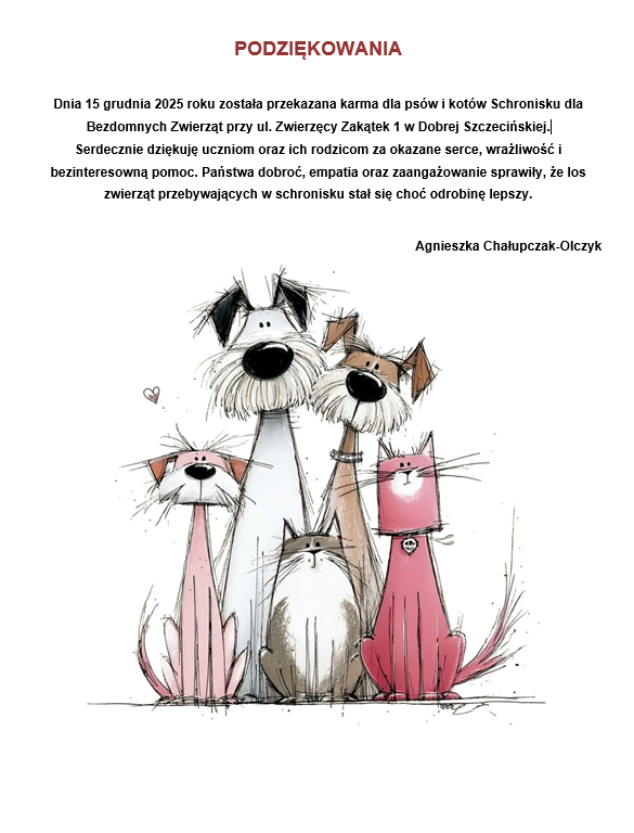 Podziękowania za udział w zbiórce karmy dla zwierząt