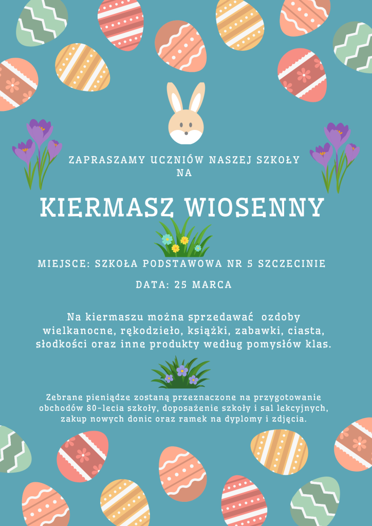 ZAPRASZAMY UCZNIÓW NASZEJ SZKOŁY NA KIERMASZ WIOSENNY