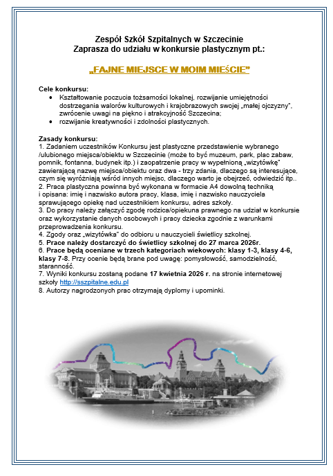 Zapraszamy uczniów z klas I-VIII do udziału w konkursie plastycznym „Fajne miejsce w moim mieście”.