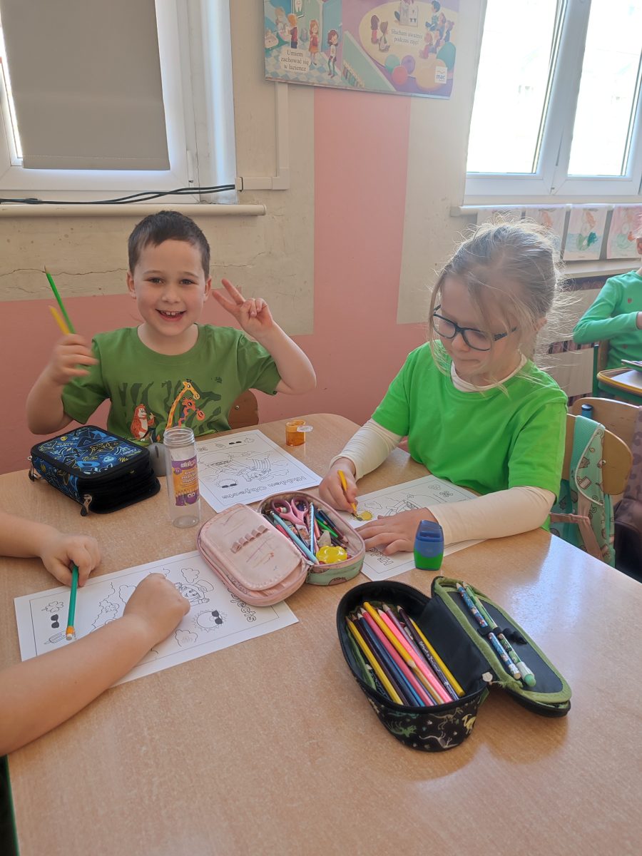 Podczas zajęć z języka angielskiego świętowaliśmy dziś Dzień św. Patryka. Dzieci poznawały proste słówka i zabawy związane z tym irlandzkim świętem, a w salach królował kolor zielony.