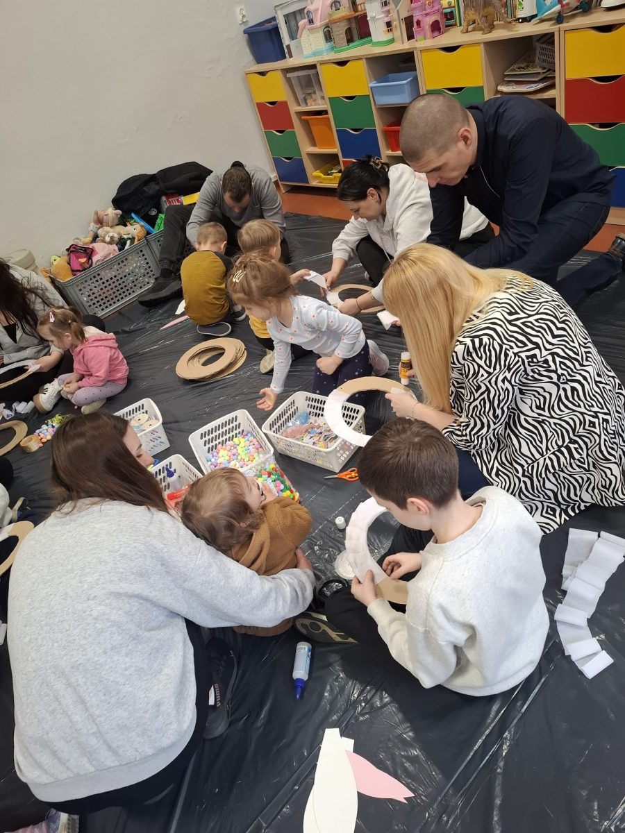 W dniu 26 marca odbyły się wielkanocne warsztaty plastyczne z udziałem dzieci i rodziców. Spotkanie przebiegło w radosnej, twórczej atmosferze. Podczas zajęć dzieci, wspólnie z rodzicami, tworzyły własne kompozycje, wykorzystując kolorowe wstążki, sztuczne kwiaty, filcowe elementy oraz przygotowane wcześniej „królicze uszka”. Każdy wieniec był inny pełen pomysłów, kolorów i dziecięcej wyobraźni. Warsztaty stały się okazją nie tylko do rozwijania zdolności manualnych, ale także do wspólnego spędzenia czasu, rozmów i wprowadzenia się w świąteczny nastrój. Powstałe prace będą piękną ozdobą wielkanocnych domów. Dziękujemy wszystkim rodzicom za zaangażowanie, uśmiech i wspólną zabawę. Cieszymy się, że mogliśmy razem stworzyć coś tak wyjątkowego.