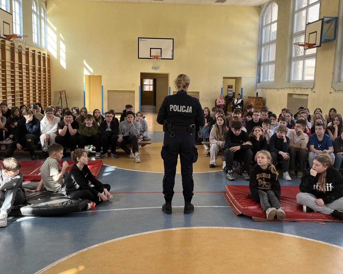 W dniach 1 kwietnia oraz 9 kwietnia 2026 r. w naszej szkole odbyły się prelekcje prowadzone przez młodszą aspirant policji, dotyczące bezpieczeństwa zarówno w świecie rzeczywistym, jak i w Internecie. Spotkania skierowane były do uczniów klas 5, 6, 7 oraz 8.